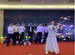 而最后安排的一個神秘節(jié)目——幾位領導們精心編排的歌曲串燒,更是把年會的氣氛拉到了頂點,最后一首《我的未來不是夢》,把大家都吸引上臺參與合唱,大家手拉著手、肩并著肩,感動和喜悅摻雜在一起,如同家人一般。